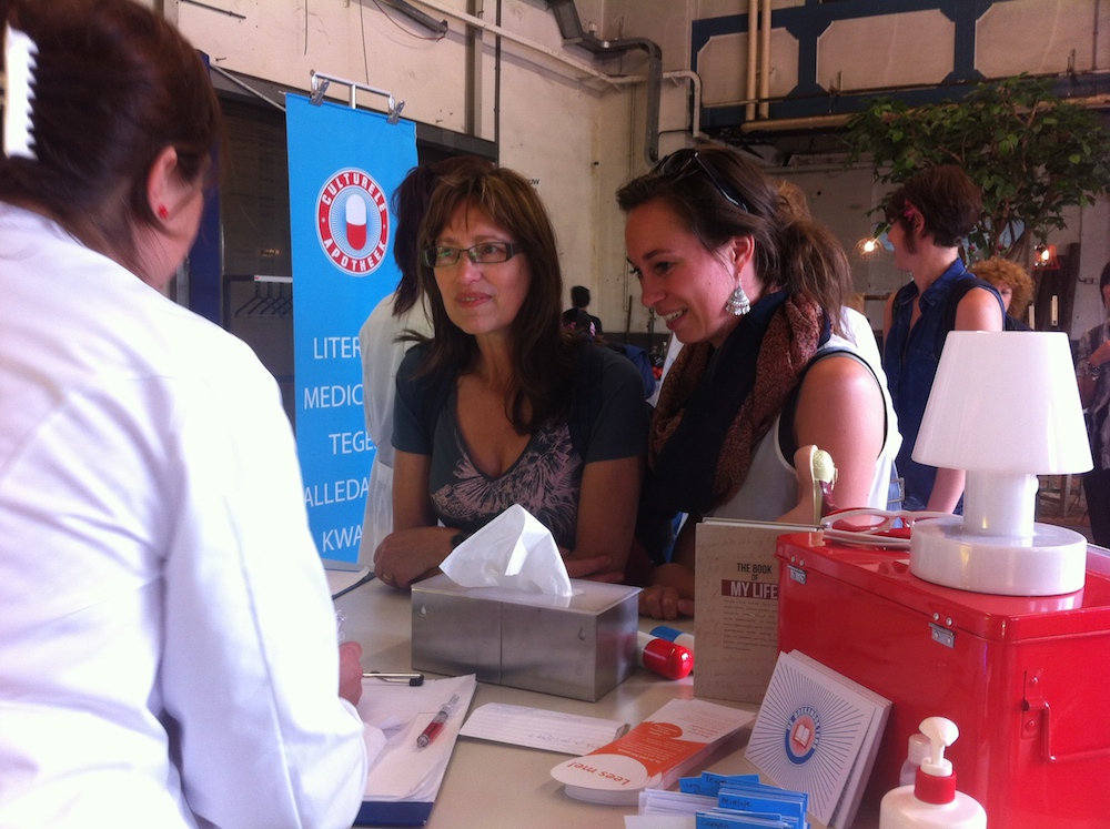 Van 27 tot en met 29 juni was de Spoorzone, achter Tilburg Centraal, weer het thuis van Festival Mundial. De Culturele Apotheek hield er op verzoek van de bibliotheek Midden-Brabant op zaterdag en zondag (bijna) doorlopend spreekuur in een speciaal gemaakt decor. Meer dan honderd festivalgangers die last hadden van overvoering, zere voeten, slapeloosheid of een andere alledaagse kwaal stonden we bij met literaire recepten. MEST magazine, het tijdschrift over bijzondere kunst en cultuur in Noord-Brabant kwam ook op consult en schreef er over.