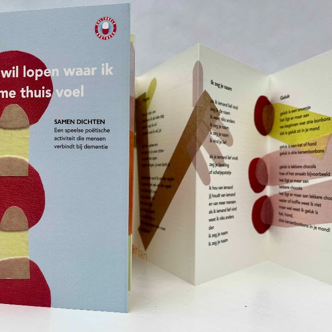 In 2025 gingen we samen met hoogleraar Aagje Swinnen aan de slag met het ontwikkelen van een nieuwe methodiek voor mensen met verder gevorderde dementie, geïnspireerd op het Amerikaanse Alzheimer Poetry Project. Deze draait om het samen reciteren van poëzie en het maken van nieuwe ritmische gedichten vol speelse associaties. De eerste pilotreeks leverde al veel moois op, waaronder een uitvouwboekje met gedichten die deelnemers aan een Cordaan-dagbestedingsgroep samen maakten.