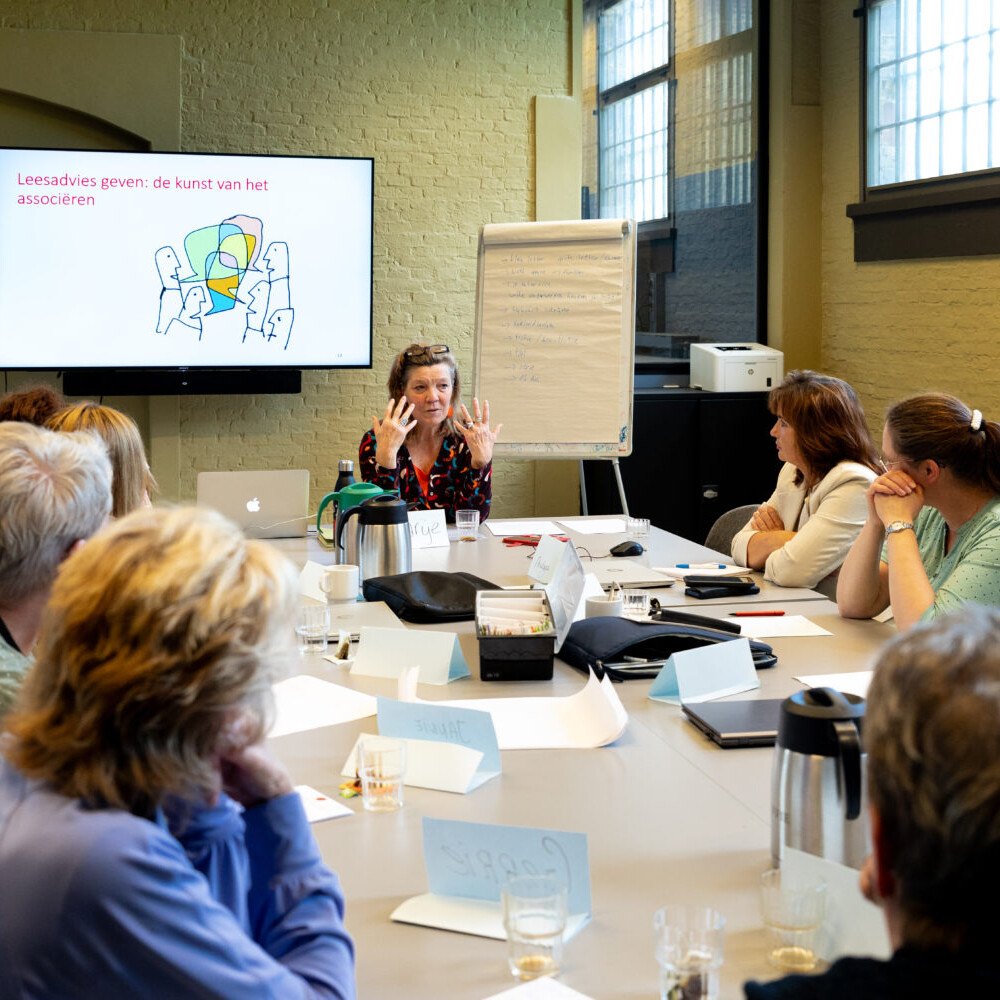 Onze groeiende faam als experts in het voeren van inspirerende gesprekken over literatuur leidde in 2015 tot een nieuwe vraag uit de bibliotheeksector: konden we geen training ‘romanadvies’ voor bibliotheekmedewerkers ontwikkelen? Zo gezegd zo gedaan. Diverse trainingen voor leesbevorderaars rond het geven van passend leesadvies en het actief promoten van de fictiecollectie vormen inmiddels een vast onderdeel van ons aanbod.
