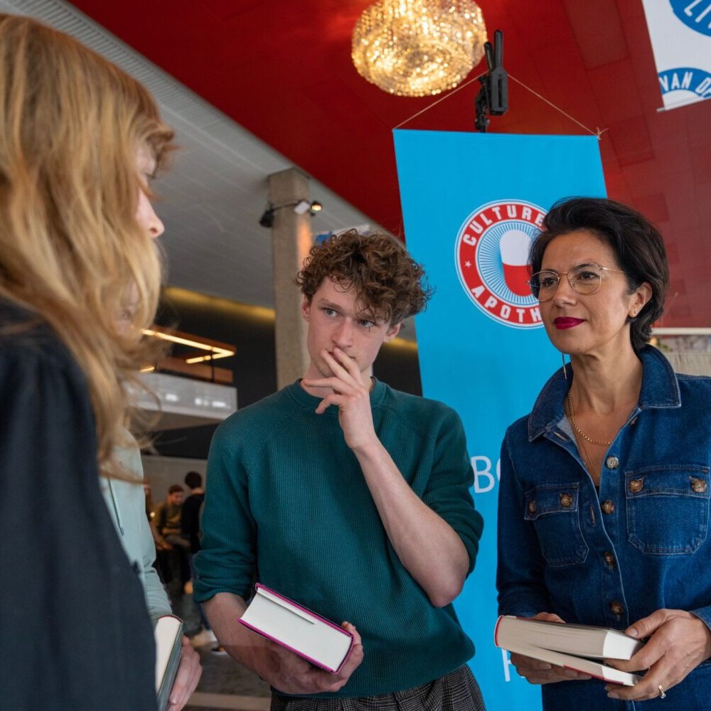 Al snel volgde een theatrale variant: ons inloopspreekuur Boeken op Recept. In witte jas ontvingen Akke, Marije, Roos, Eva, Annemarie, Esmé en Marja in 15 jaar tijd vele duizenden mensen in onze mobiele apotheek, opgebouwd in bibliotheken en op dorpspleinen en festivallocaties door heel Nederland. Relatieperikelen, keuzestress, werkwalging, toekomstangst: voor welk prangend levensdilemma schreven we inmiddels geen raak boekenrecept uit?