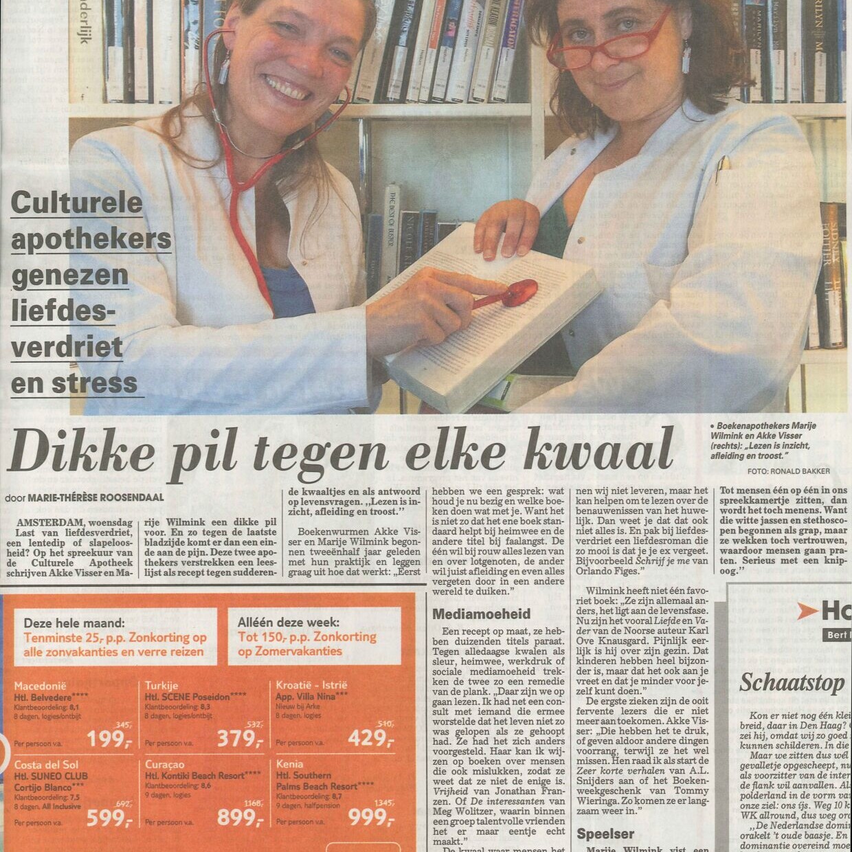 ‘Dikke pil tegen elke kwaal’, kopte De Telegraaf in 2014 boven een interview met een héle grote foto van Akke en Marije in vol ornaat. Het gaf onze naamsbekendheid een flinke boost. Voor wie niet op een inloopspreekuur kon komen, gingen we ook ‘zelfzorgrecepten’ op onze website en in receptcolumns voor diverse tijdschriften publiceren.